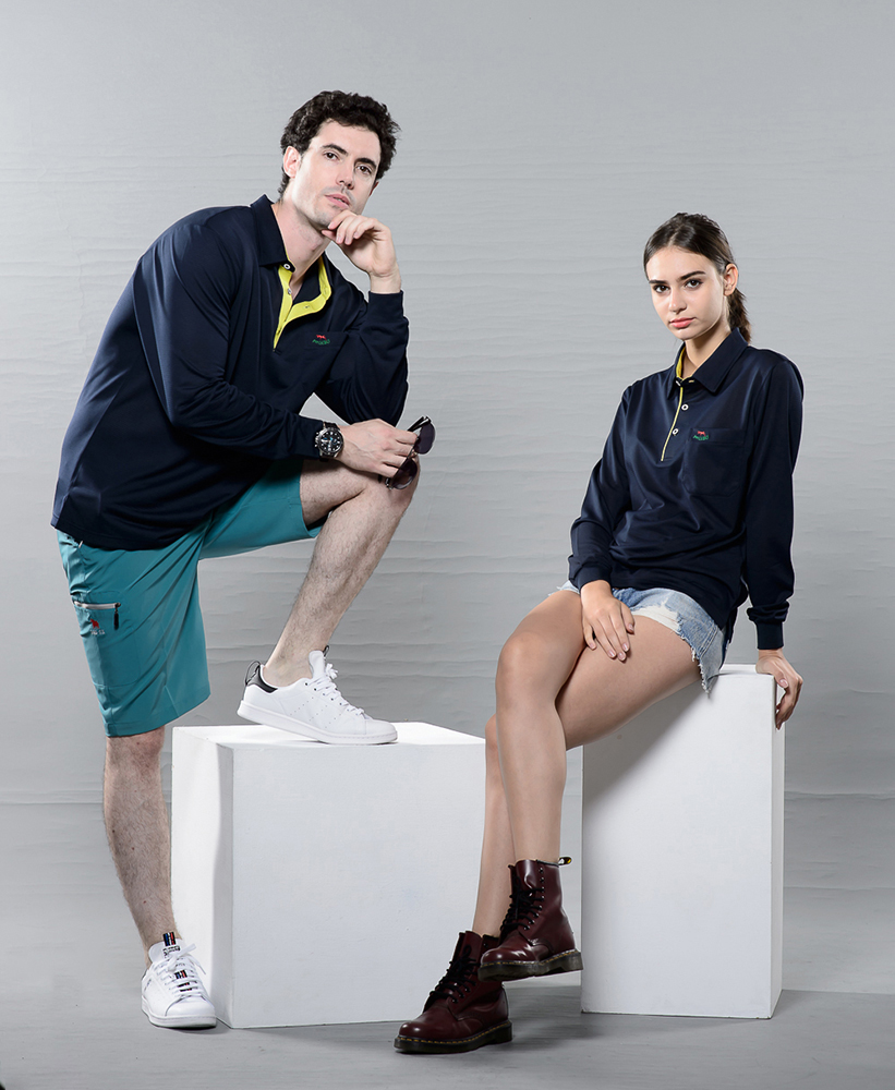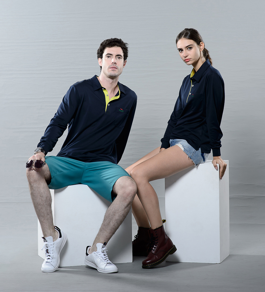 長POLO衫 網眼細橫條排汗布