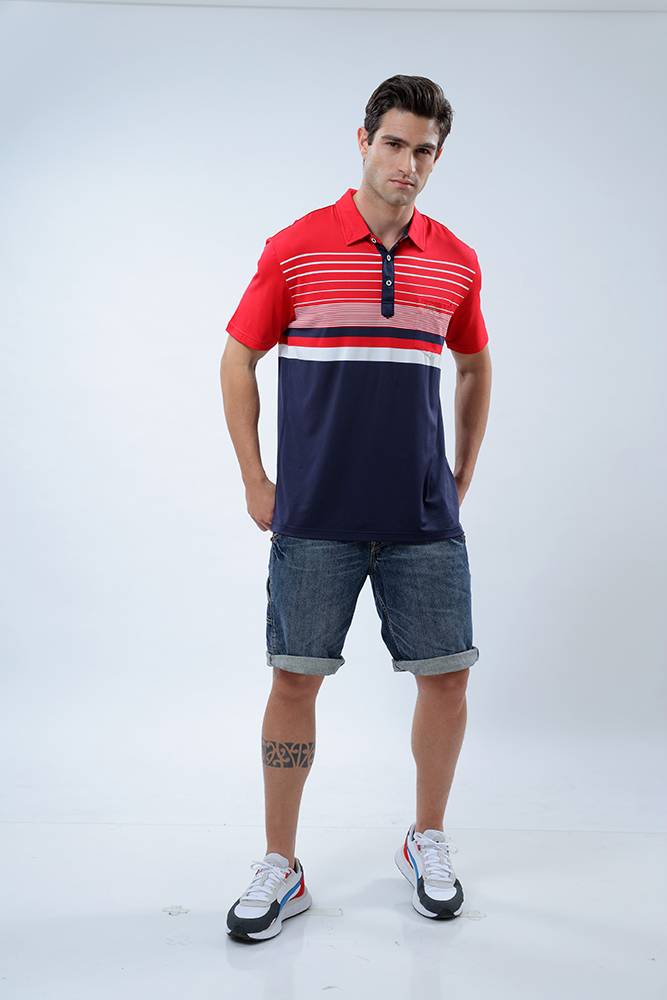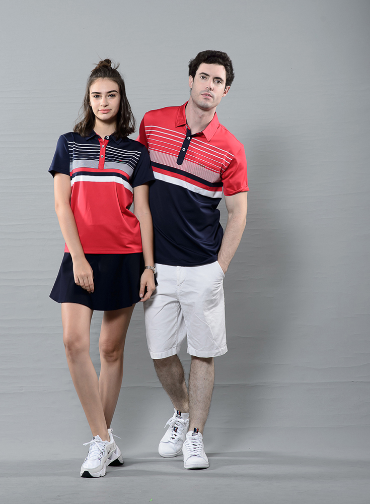 TOP 彈力吸濕排汗衫:採用條紋設計布料,具優異吸濕排汗效果,四面彈性設計,舒適自在。