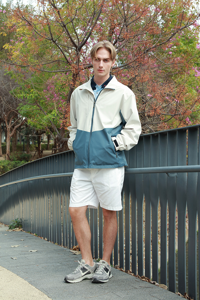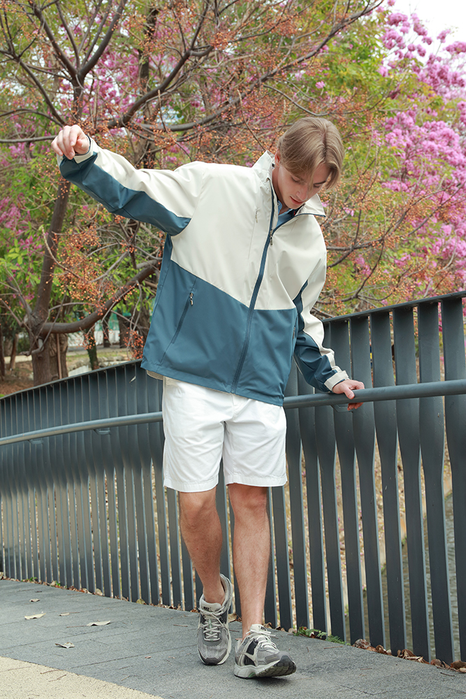 75D高彈斜紋布料 : 布面細膩耐用、彈性佳,表面呈斜紋紋理,兼具防潑水、透氣與舒適;兼具時尚與功能性