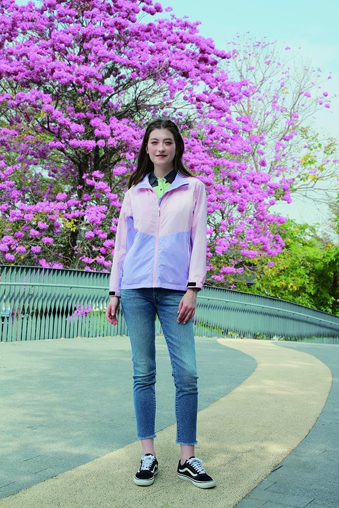 75D高彈斜紋布料 : 布面細膩耐用、彈性佳,表面呈斜紋紋理,兼具防潑水、透氣與舒適;兼具時尚與功能性