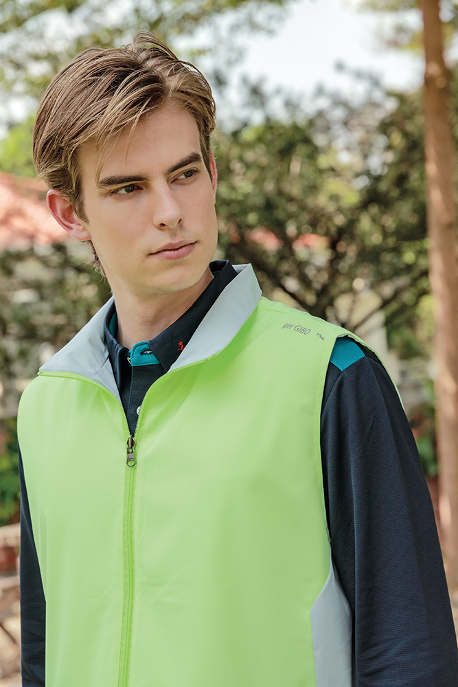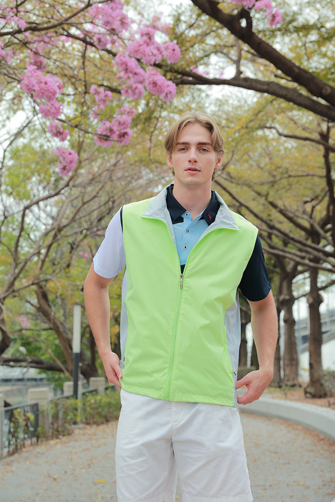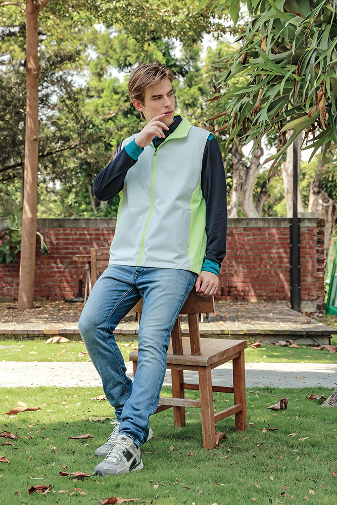 75D高彈斜紋布背心:雙面雙色造型多變,防潑水機能實用;中性設計,男女皆宜;脇邊跳色剪接更具層次,側口袋實用收納,肩部反光設計安全時尚。