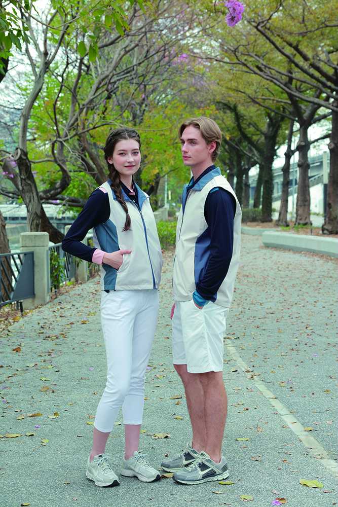 75D高彈斜紋布背心:雙面雙色造型多變,防潑水機能實用;中性設計,男女皆宜;脇邊跳色剪接更具層次,側口袋實用收納,肩部反光設計安全時尚。